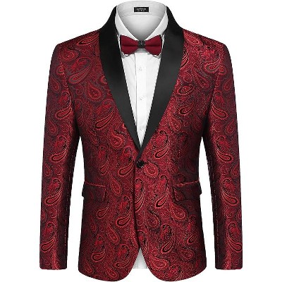 Coolmee Men's Floral Tuxedo Jacket Jacquard Suit Jacket One Button Slim Fit Blazer