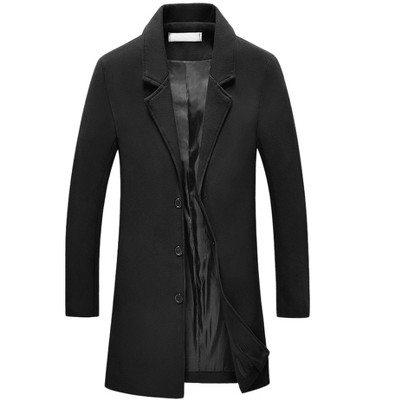 Men's Double-Breasted Knee Length Wool Blend Three Button Long Jacket Overcoat Top Coat