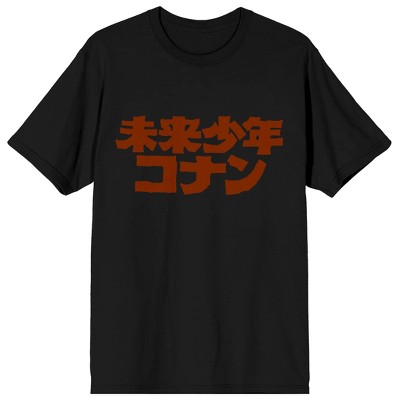 Future Boy Conan Red Kanji Logo Crew Neck Short Sleeve Men's Black T-shirt