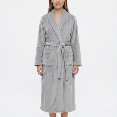 Anna-Kaci Lounge Women's Plush Shawl Collar Bathrobe with Full Length Wrap Design Adjustable Waist Tie Sleeves and Pockets
