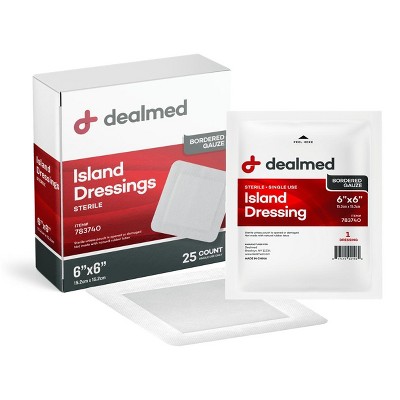 Dealmed Bordered Gauze 6" x 6" Island Dressing, Individually Wrapped, Sterile, 25/Box (Pack of 1)