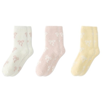 Anna-Kaci 3 Pairs Women's Mid-Calf Socks with Bow Pattern and Ruffled Cuff