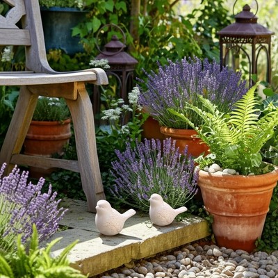 Handcrafted Ceramic Bird Figurines with Floral Embossed Design - Decorative Home & Garden Statues - Set of 2 - 6" Ivory & Beige