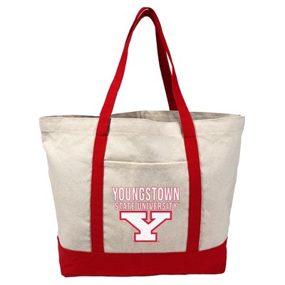 Youngstown State University Primary Logo Canvas Tote Bag With External Pocket, Reusable Shoulder Bag for Shopping, School, Beach