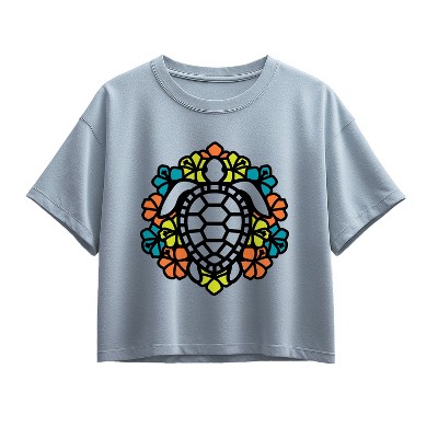 Girls' - Instant Message - Tropical Flowers and Turtle Short Sleeve Boxy Graphic T-Shirt