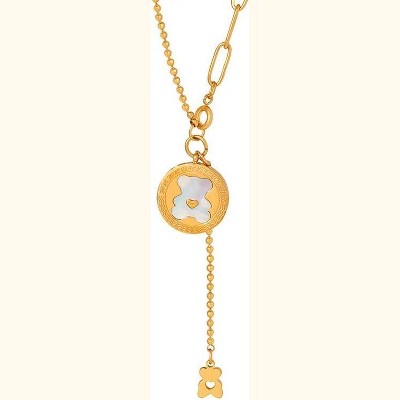 Clotth 17.71" Shell Necklace with Cartoon Bear Pattern and Tassel - Natural Seashell Pendant, Minimalist Beach Jewelry for Women