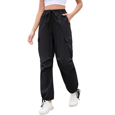 Clearlove Women High Waisted Drawstring Wide Leg Cargo Pants Trendy Casual Baggy Joggers Pants with Pockets