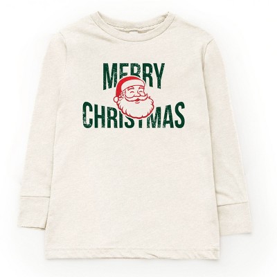 Merry Christmas Arched Glitter Santa - Youth Long Sleeve Graphic T-Shirt