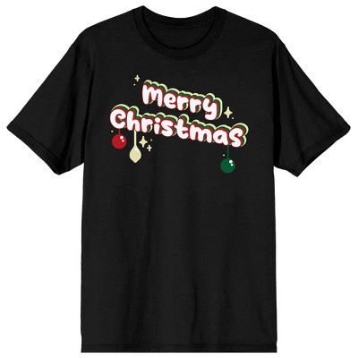 Handwritten Holiday Merry Christmas Ornaments Crew Neck Short Sleeve Black Adult T-shirt