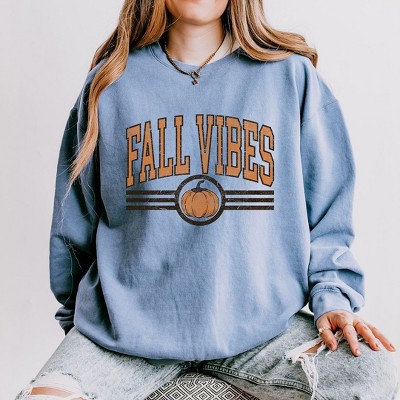 Simply Sage Market Women's Lightweight Garment Dyed Graphic Sweatshirt Fall Vibes Varsity Pumpkin