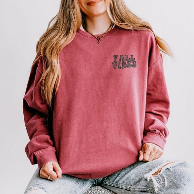Simply Sage Market Embroidered Fall Vibes Retro Lightweight Garment Dyed Sweatshirt