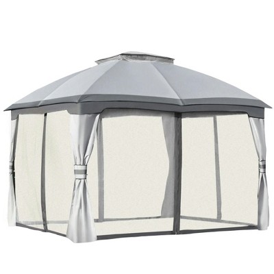 Outsunny 10.5' x 12' Outdoor Gazebo with Mesh Netting Sidewalls for Shade and Rain, Patio Gazebo Canopy with 2-Tier Soft Top Roof and Steel Frame