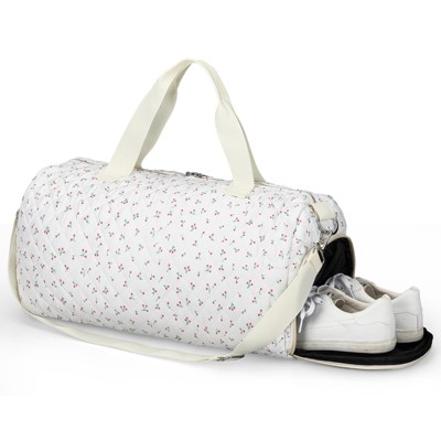 Narwey Little Cherry daisy Quilted Duffle Bag for Women Cotton Dance Bag with Adjustable Carry Strap