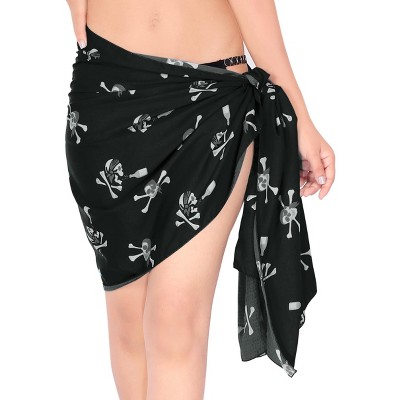 LA LEELA Womens Halloween Beachwear Pareo Caribbean Skull Pirate Casual Swimsuit Swim Cover Up Sarong Coverups Mini Skirt Beach Wraps One Size Black,