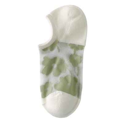 Anna-Kaci Women's 3-Pair Sheer No Show Socks Floral Pattern Lightweight Soft Knit Comfortable Everyday Sock Set - Green