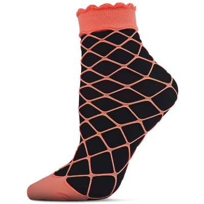Memoi Women's Bow Maxi Fishnet Anklet Socks Black One Size
