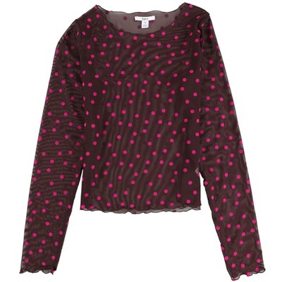bar III Womens Polka-Dot Mesh Pullover Blouse