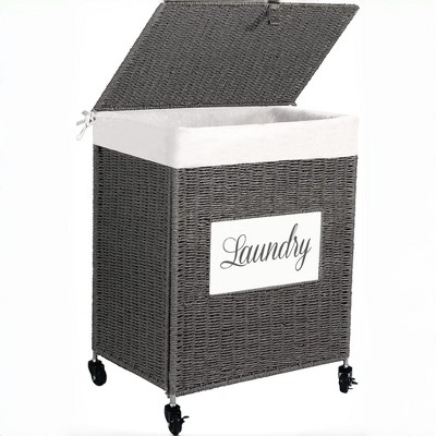 Kumasinova Bamboo Laundry Hamper with Lid & Removable Liner,Large 55L /33lbs Capacity Dirty Clothes Basket,19.75 x 14.25 x 23.5 Inches,Coffee