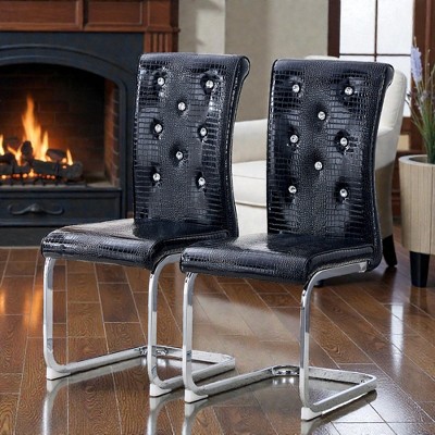 Mshliw Set of 2 Retro Upholstered Dining Chairs with Crystal Button Design, Faux Leather Seats and Electroplated Metal Bow Legs, Accent Chairs