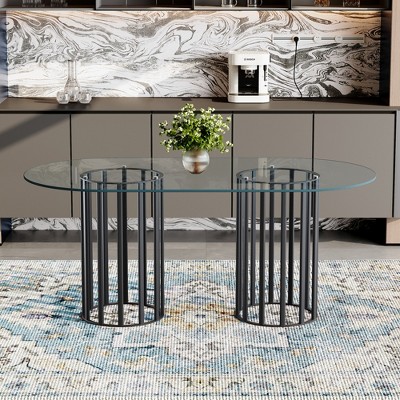 GDFStudio Brian Modern Oval Metal Tempered Glass Dining Table