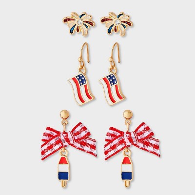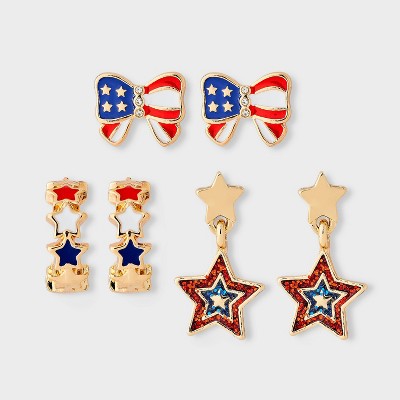 Americana Flag and Fireworks Mixed Hoop Earring 3pc Set - Gold/Multi