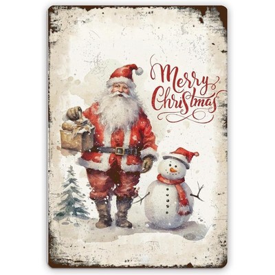 Lomsoe Xmas Metal Tin Sign Merry Christmas Sign Vintage Painting Tin Sign Yard Garden Wall Decor Christmas Tin Sign 12 x 8 Inch
