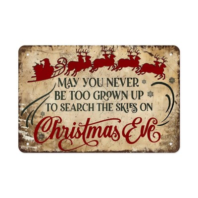 Lomsoe Christmas Signs Vintage Metal Tin, May You Never to Too Grown Up to Search The Skies Christmas Eve 8x12 Inch Rustic Wall Art Christmas Gift