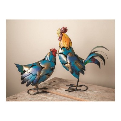 Metal Rooster & Chicken Assortment – Set of 2 (Multi-Color) 11.25" by Manual Woodworkers and Weavers