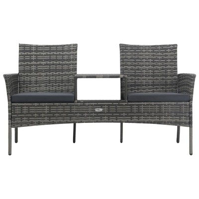 vidaXL 2-Seater Patio Sofa with Tea Table Poly Rattan - Anthracite