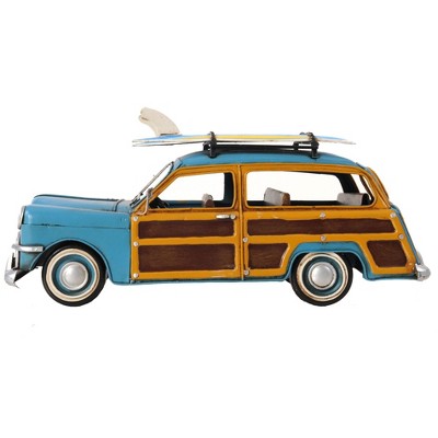 HomeRoots 6" Blue And Yellow Metal Hand Painted Decorative Car