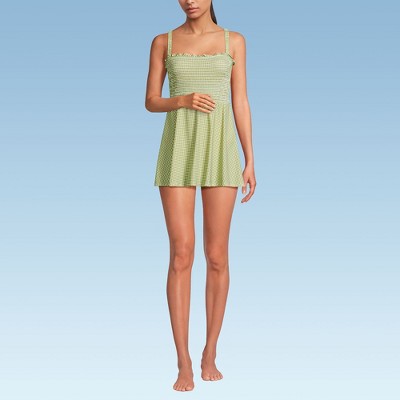 Lands' End Womens Square Neck Smocked Mini Swim Dress