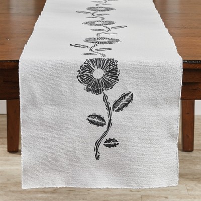 Saro Lifestyle 100% Linen Stonewashed Embroidered Linen Table Runner, 16"x72", Ivory