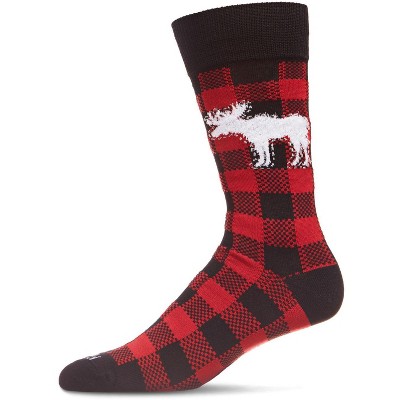 Memoi Men's Buffalo Plaid Checked Moose Holiday Crew Socks Black-Red 10-13