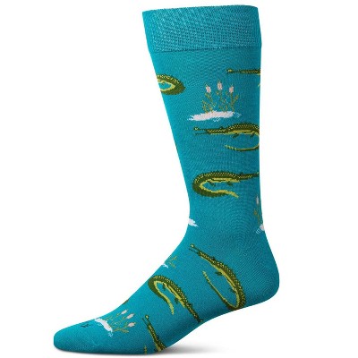 Memoi Men's Alligators Bamboo Crew Socks Aqua 10-13