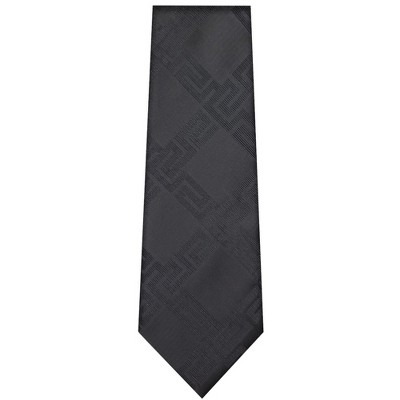 TheDapperTie Men's Black Geometric Necktie with Hanky