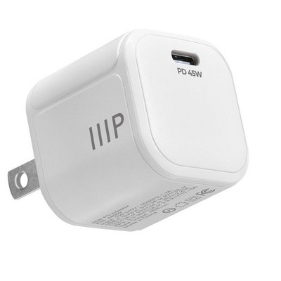 Monoprice Compact 45W 2-Port GaN Charger, Fast Charge, USB-C & USB-A, Universal Compatibility
