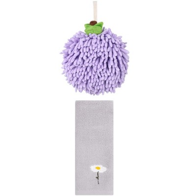 REGALWOVEN Absorbent Soft Chenille Cartoon Alpaca Fuzzy Ball Bathroom Hanging Hand Towels 7" x 7"/7" x 11" 2 Pcs