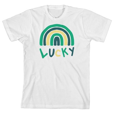 St. Patrick's Day Lucky Rainbow Crew Neck Short Sleeve Youth White T-shirt