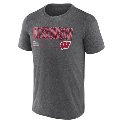 NCAA Wisconsin Badgers Men's Charcoal Heather Poly T-Shirt