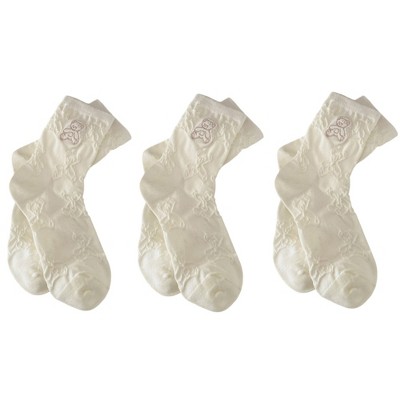 Anna-Kaci Women's 3-Pair Sheer Crew Socks with Textured Bow Pattern Lightweight Mesh Everyday Sock Set - Off-white