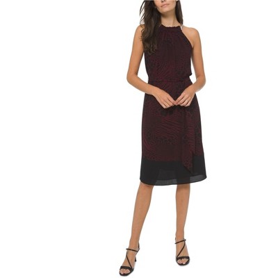 Michael Kors Womens Snakeskin Printed Chain Neck Cocktail Dress