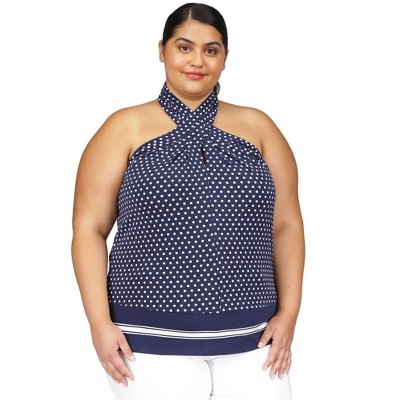 Michael Kors Womens Dot Print Border Jersey Halter Top Shirt