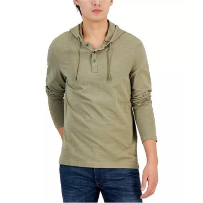 Michael Kors Mens Slub Long-Sleeve Henley Hoodie Sweatshirt