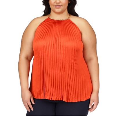 Michael Kors Womens Chain Strap Pleated Halter Top Shirt