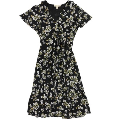 Michael Kors Womens Floral Wrap Ruffled Midi Dress