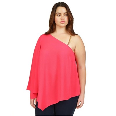 Michael Kors Womens Asymmetric Chain Strap One Shoulder Blouse