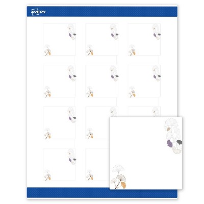 Avery Square Labels, Floral Design, 3" x 3", 60 Total, Glossy, Watercolors with Gold Ginkgo Leaves