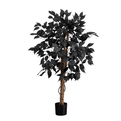 Nearly Natural 4-ft Artificial Halloween Black Ficus Tree with Natural Trunk