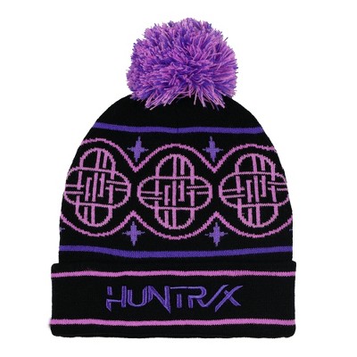 K-Pop Demon Hunters Beanie HUNTR/X Embroidered Women's Pom Knit Cuff Cap Hat Hunter Logo OSFM Black