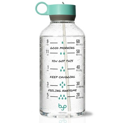 Byo 74 Oz Tritan Motivational Bottle with Straw (Mint), BPA-Free & Leakproof with Wide Mouth, Carry Handle Lid, Dishwasher Safe